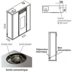 - Consommation de granulés (à puissance nominale) : 2 kg/h