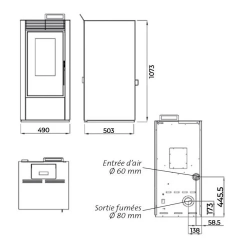 - Diamètre de sortie des fumées : 80 mm