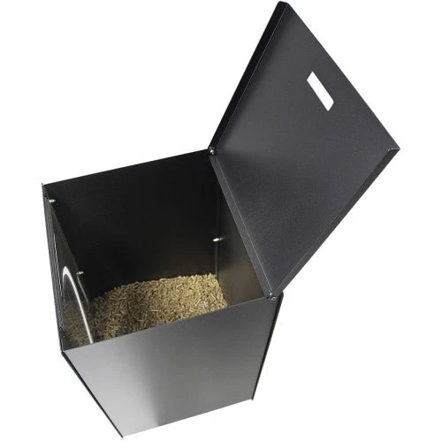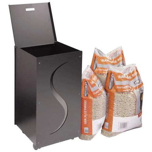 La Pellet’Box de Stovia peut contenir 45 kg de granulés, idéal pour stocker 3 sacs de granulés. Il est possible de visualiser l’état de la réserve par la vitre en plexi. Pour pouvoir la déplacer et la recharger facilement, elle est pourvue d’un couvercle sur roulettes. En outre, la composition en acier revêtu d’une peinture noir mat lui confère une finition parfaite.